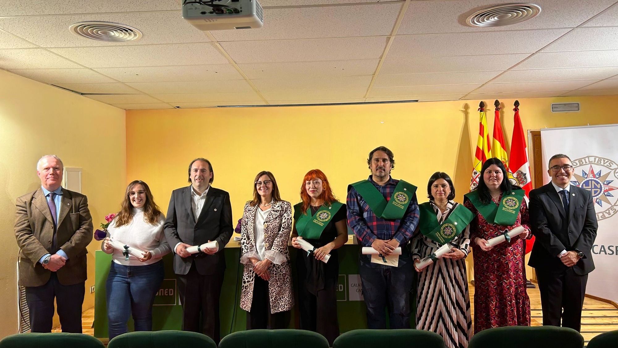 La ceremonia fue presidida por la alcaldesa de Caspe, D.ª Ana Jarque Garcés, y por el director de la UNED de Calatayud, D. Luis Joaquín Simón Lázaro.