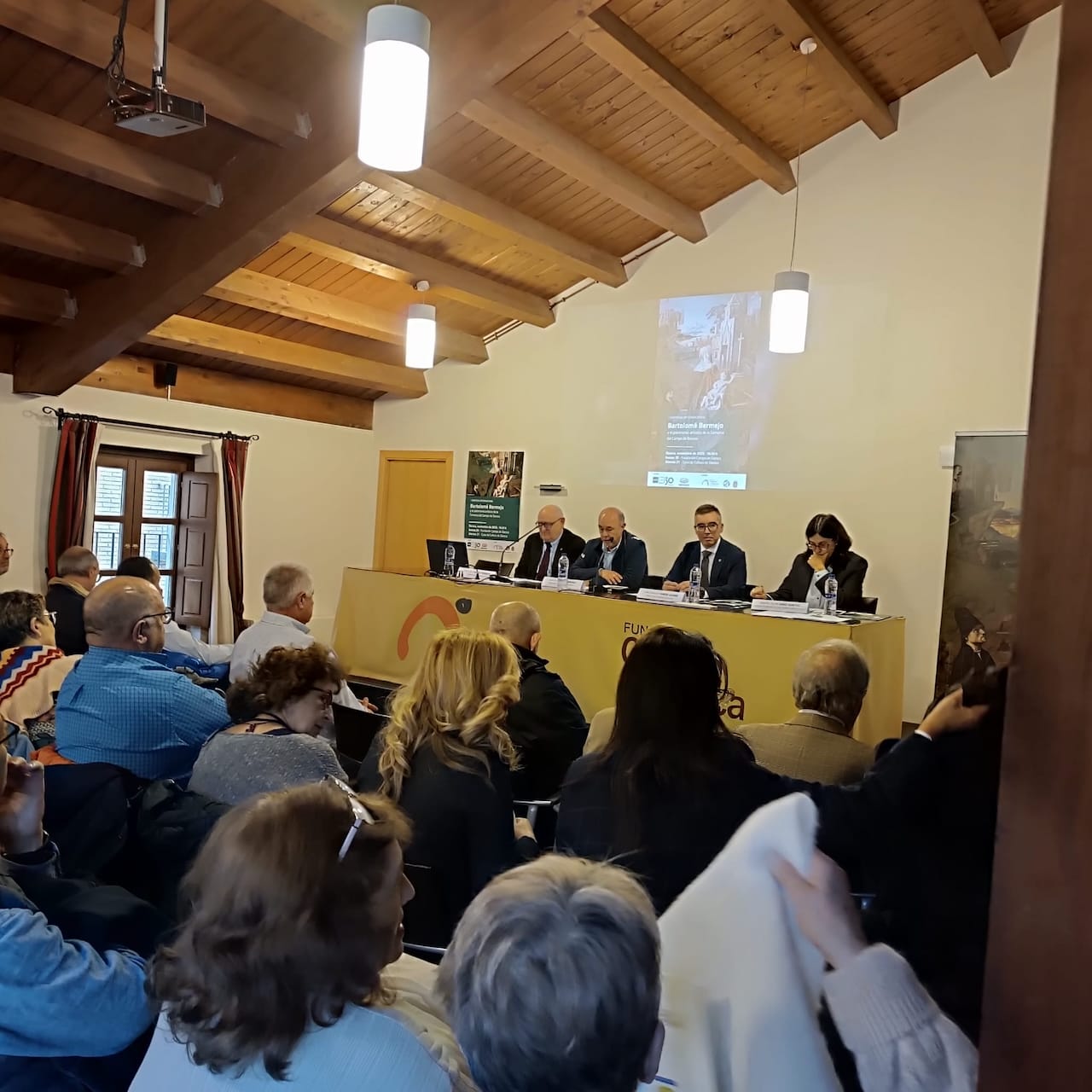 Por la tarde, la atención se desplazó a la Casa de Cultura, donde se profundizó en dos obras clave de Bermejo: la Virgen de Montserrat del tríptico de Acqui Terme y Santa Engracia, conservada en Boston. La proyección del documental Bartolomé Bermejo. El despertar de un genio y un concierto de música medieval completaron un programa que combinó investigación de alto nivel y divulgación accesible.
