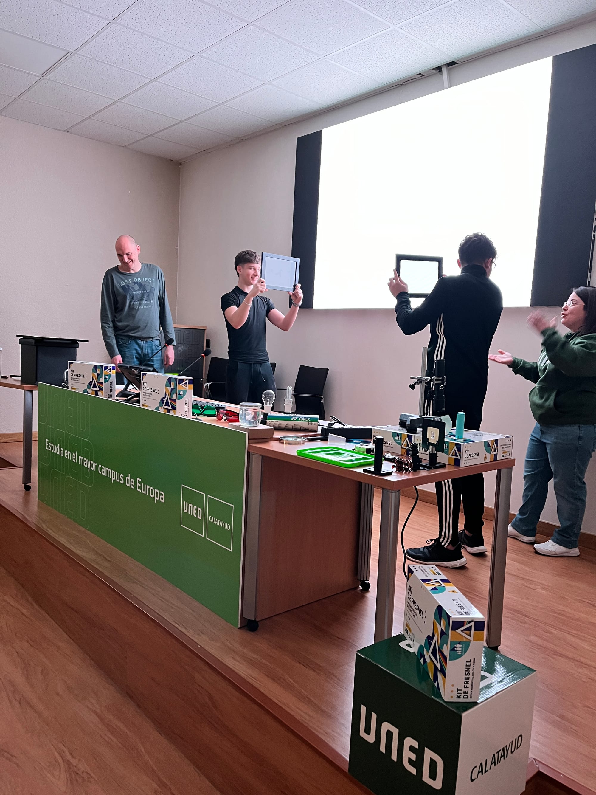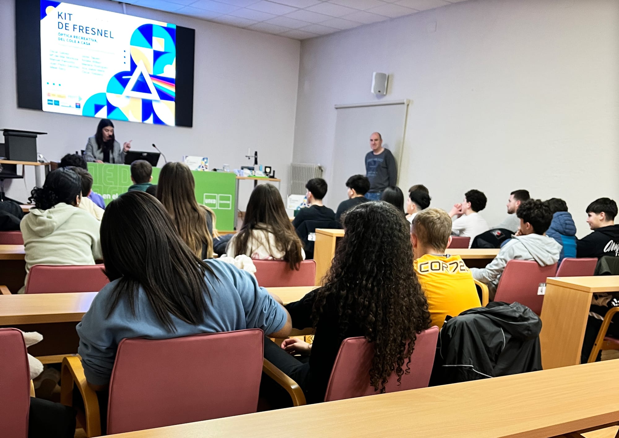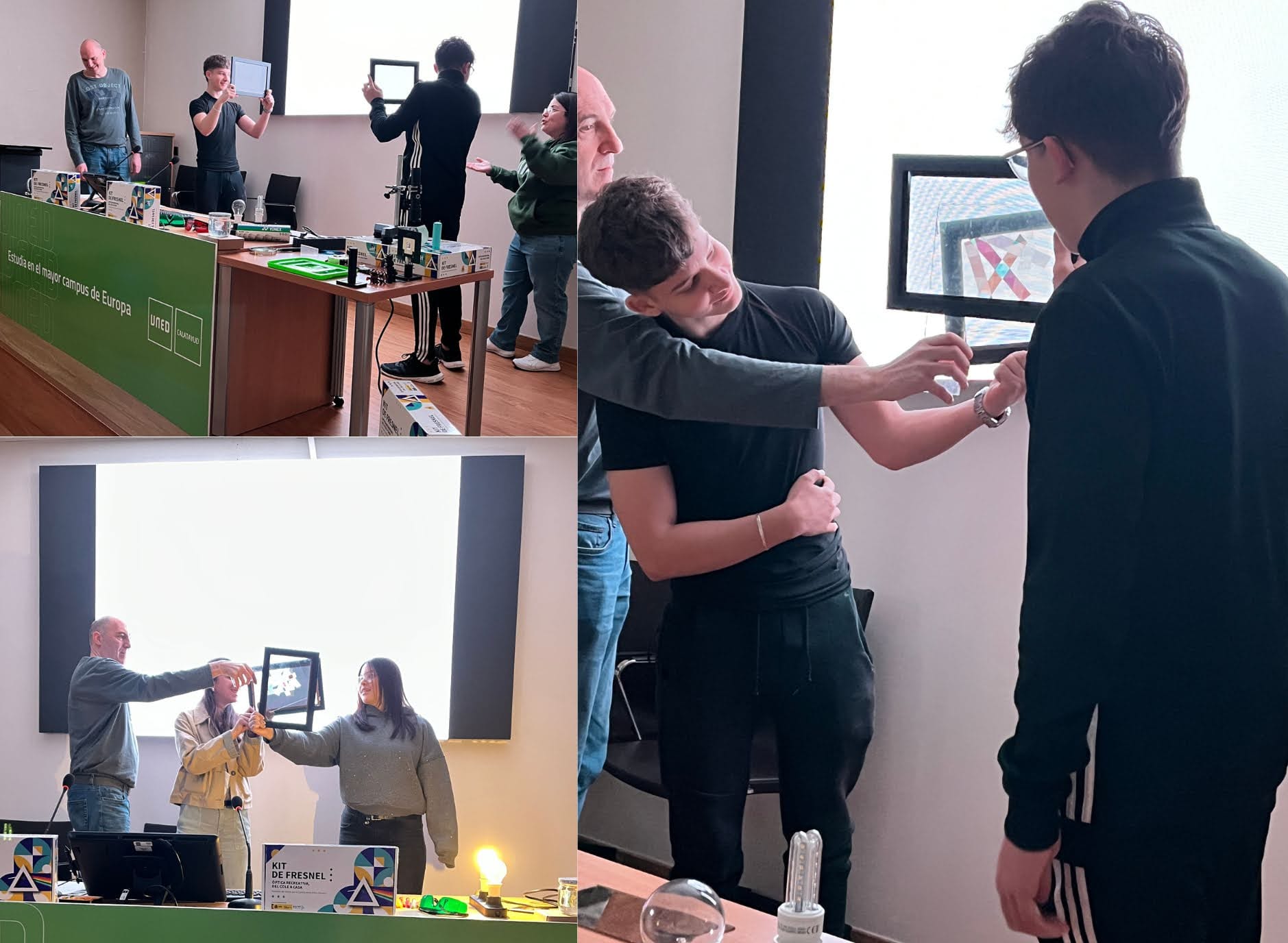 La semana arrancó con los talleres del Kit de Fresnel, impartidos por los profesores Mikel Sanz Monasterio y Ana Isabel Mártir Bueno, de la Facultad de Ciencias de la UNED.