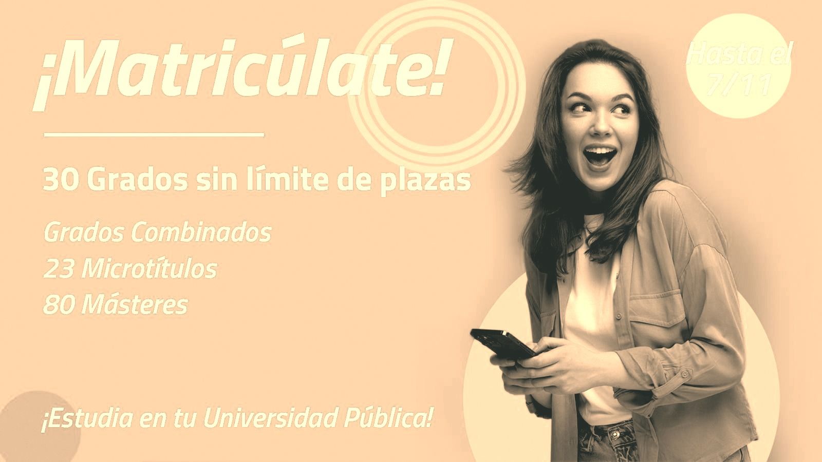 La UNED ha ampliado hoy el plazo de matrícula para sus estudios de Grado, Grados Combinados, Másteres Oficiales, Microtítulos, Curso de Acceso para Mayores de 25 y 45 años e Idiomas. De esta forma, los estudiantes tendrán la oportunidad hasta el 7 de noviembre de entrar a formar parte del mayor campus de Europa para estudiar a su ritmo y desde cualquier lugar del mundo gracias a su metodología online y semipresencial, líder en su sector.